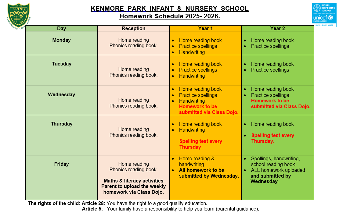 Homework is a very important part of a child’s education and can add much to a child’s development. One of the aims of our school is for children to develop as independent learners. We believe that homework is one of the main ways in which children can acquire the skill of independent learning.